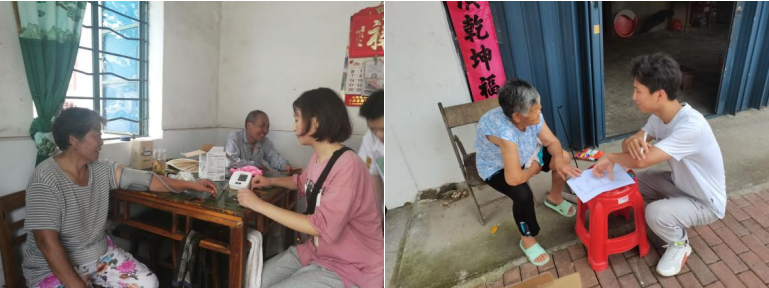 在活动前,团队就对此次三下乡各项事务做了精心的准备。实践活动开始后,团队一行通过走访调查、为老人量血压、做健康知识宣讲以及损伤的简单康复手段进示范等形式,普及健康和康复知识,受到了居民们的一致好评。