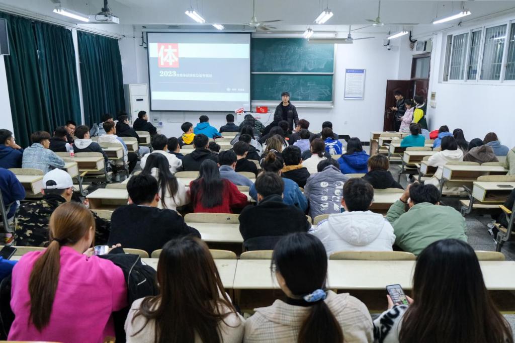 为了获得考研相关的建议,体育教育专业2019级(2)班的徐志提前半个小时来到了教室。“之前我对于考研还有些犹豫,但是在听完这次会议之后,我对考研这个想法更加地坚定了。这次动员会也给我们分享了许多考研‘干货’,对我以后的考研选择提供了很大帮助。”(撰稿:学生记者 权琪;摄影:学生记者 李妍纯惠;审核:高栋梁)