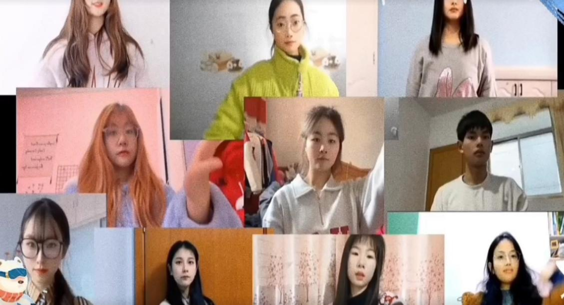 伴随着一支动感音乐,体育表演专业2021(2)班的学生们用手势舞进行表演。“我们特意选择这首贴合冬奥主题的歌曲进行手势舞的练习与展示。”该班班长体育表演专业2021(2)班的姚羽晗表示,尽管在寒假期间不能将班级同学组织在一起进行集中展示,但班上的同学们仍然十分配合学习。“大家热情都很高,在不到三天的时间里,全班同学就录制好了个人视频。”