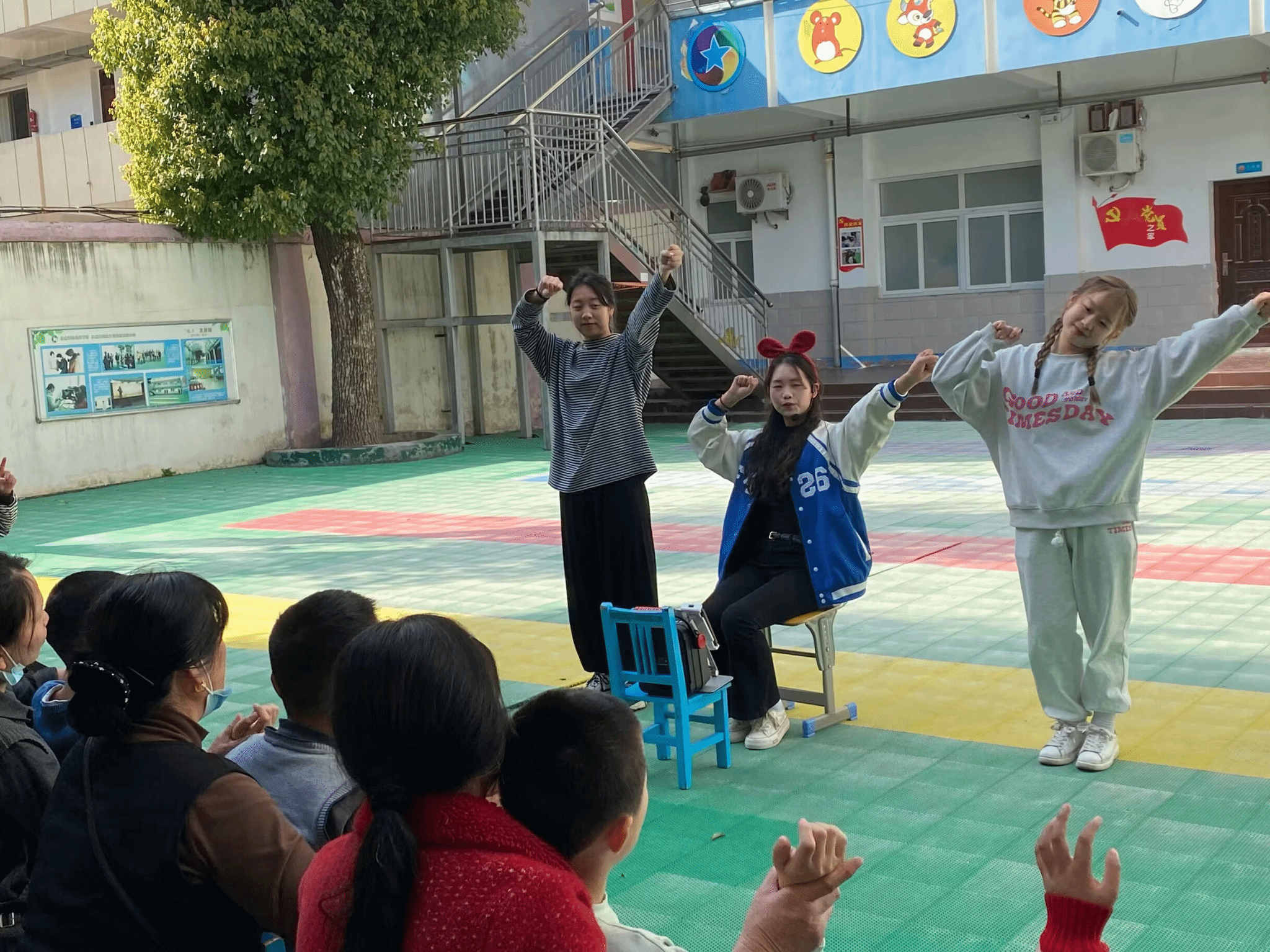 “小朋友们看我,小手举起来,慢一点!”活动现场,志愿服务队员带领小朋友们学起了简单的舞蹈动作。“老师看我的动作对吗?”孩子们脸上挂着灿烂的笑容,纷纷拍起了小手,用自己的方式表达对志愿者的真挚感谢。在志愿者耐心、细心地陪伴中,孩子们度过了一个快乐的下午。