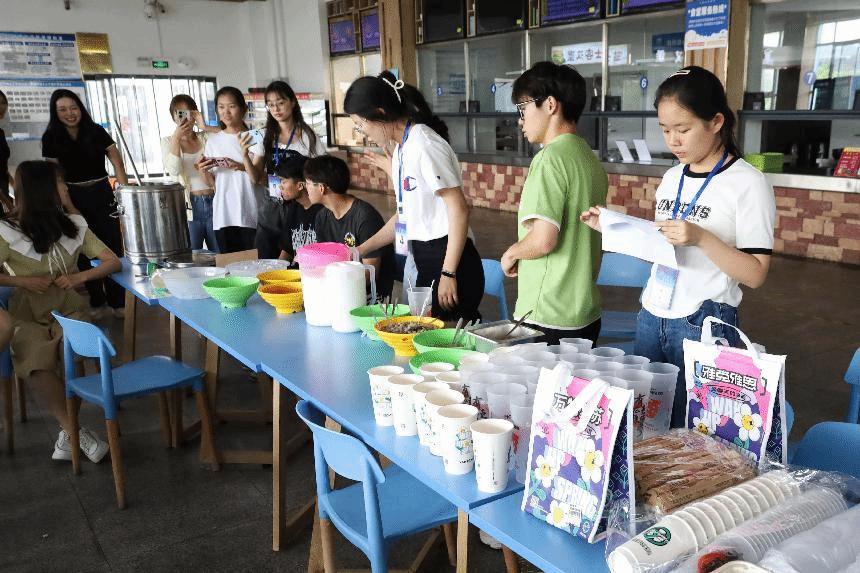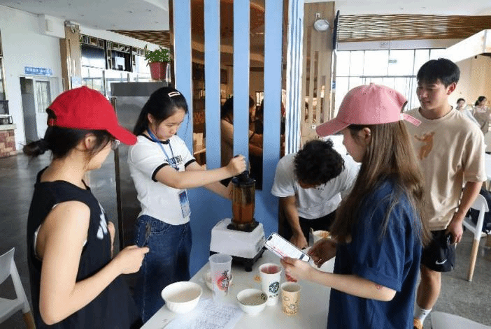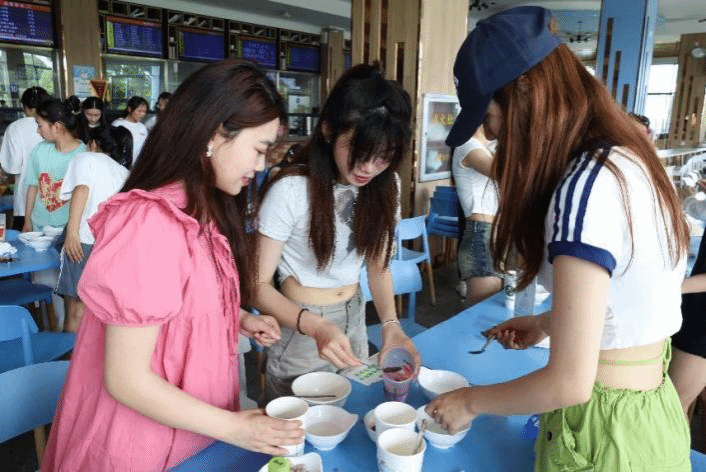 在“奶茶DIY”环节中,晋级队员们继续发挥想象、展现创意。或混合葡萄果浆和草莓冰沙,使葡萄的清香与草莓的甜香结合;或铺上层层奶盖,加入芋圆与椰果制造“朦胧感”;或上下晃动,让牛乳充分融化……学生们啜饮杯中的奶茶,纷纷直呼“太好喝了!”