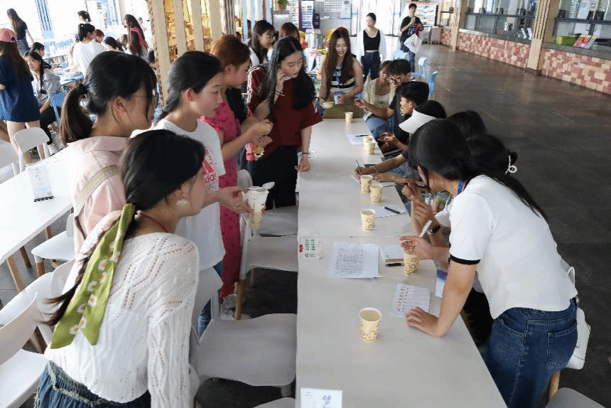 “我们加入了自己准备的可乐,这样制作出来的奶茶不会很甜,而是清爽可口。”体育教育专业2022(6)班的吴其秀称,由于奶茶的整体颜色接近于葡萄酒的颜色,所以团队结合古代诗词文化,给作品取名为“葡萄美酒月光杯”,最终她所在的团队获得了“创新创意奖”。