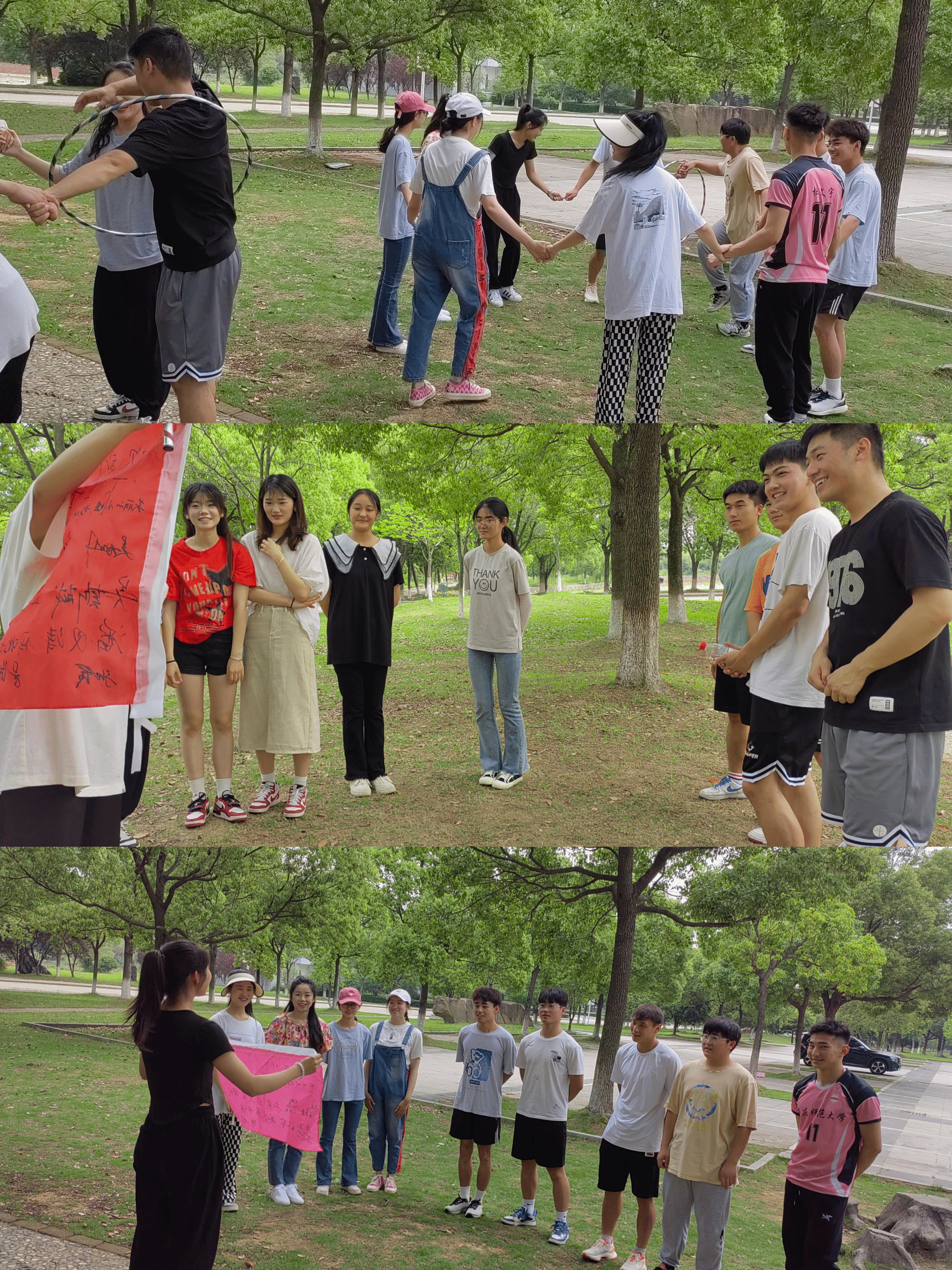 在总结环节,同学们聚在一起分享心得体会,发表感想。2021级体育教育专业陈旭杰说:“从最开始的陌生拘束到游戏中的合作、再到最后的共赢,我明白了团队力量永远大于个人力量,我体会到团结、勇气、信心,都是制胜的关键;只有精诚团结,才能挑战看似不可能的困难,夺取意想不到的胜利。”