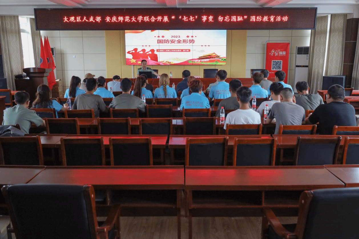 此次活动由安庆市大观区人武部与安庆师范大学联合开展,分为参观中共安庆建党会议旧址陈列馆、参与国防教育讲座以及退役复学学生分享军旅经历三个环节,人武部上校部长陈洪涛、上校政委聂竹青出席指导活动。