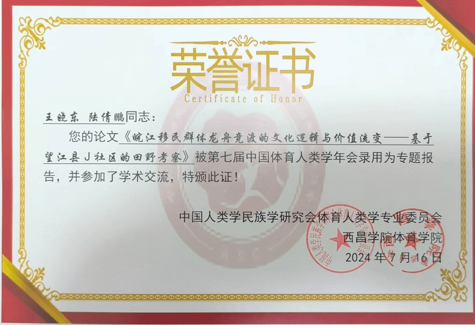 此次年会由中国人类学民族学研究会体育人类学专业委员会主办,西昌学院承办,会议主题为“体育文化遗产与人类命运共同体构建”,共有来自全国各高校及科研院所的400多名学者、专家参与其中。王晓东教授在会上作了题为《皖江移民群体龙舟竞渡的文化逻辑与价值流变——基于望江县J社区的田野考察》的专题报告。同时,作为中国体育人类学专业委员会常务理事,王晓东教授担任了会议“体育历史与文化认同”版块的主持人和与谈人,同参会学者进行了交流和互动。