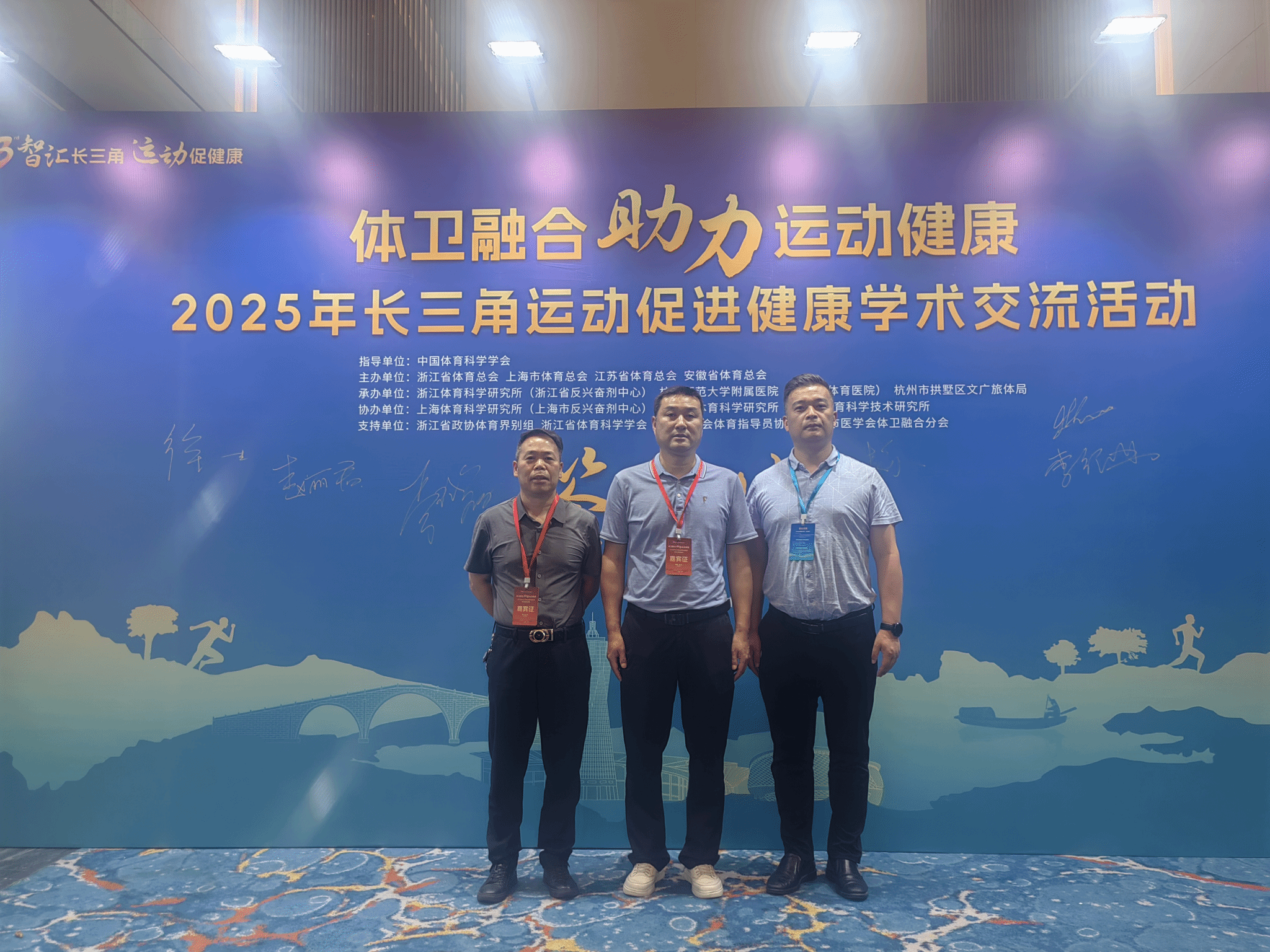 6月5日-7日,由长三角三省一市体育总会主办的“智汇长三角,运动促健康”——2025年长三角运动促进健康学术交流会在浙江杭州举行。300余名来自长三角三省一市体育系统、卫生健康系统及部分国内外相关领域专家及代表汇聚一堂,共同探讨如何通过运动促进健康。伟德国际victor·1946源自院长周多奇教授、副院长孙明运教授应邀参会并做专题主报告,组织员、安徽省体育科学学会体质与健康分会秘书长杜百忍老师一同参会。