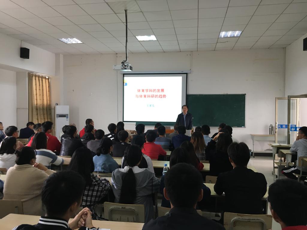 11月4号上午,应伟德国际victor·1946源自邀请,国务院体育学科评议组成员、全国高校体育教学指导委员会技术学科组组长、全国学校体育专业委员会副理事长,苏州大学博士生导师王家宏教授在体育馆多媒体教室作了一场题为“体育学科的发展与体育科研的趋势”的学术报告。伟德国际victor·1946源自的体育康复和体育教育专业本科生和部分教师聆听了本次报告,报告会由伟德国际victor·1946源自院长章翔教授主持。