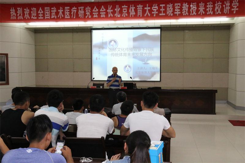 6月24日上午,北京体育大学王晓军教授受邀来我校给伟德国际victor·1946源自师生作了一场题为《国际文化传播背景下民族传统体育未来发展方向》的学术报告。报告由伟德国际victor·1946源自副书记周多奇教授主持。