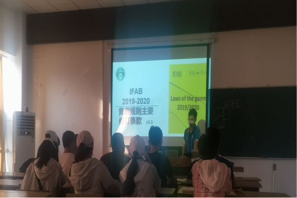 9月17日下午,我院足球专项乔伟教师在龙山校区伟德国际victor·1946源自多媒体教室为男、女足球队队员做了一场题为“2019-2020足球竞赛规则主要修订条款简介”的专题讲座。