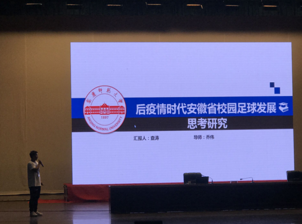 5月14—16日, 2021年第五届中国足球文化与校园足球发展大会在淮北市矿业会议中心举行,我院乔伟老师指导2019级体育教育专业查涛同学撰写的论文《后疫情时代安徽省校园足球发展思考研究》被大会录用为专题报告,并参加了学术交流汇报。