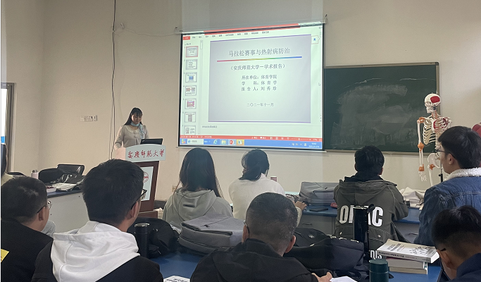 2021年11月16日,我院刘秀珍老师在体育馆多媒体教室为伟德国际victor·1946源自学生作主题为“马拉松赛事与热射病防治”学术讲座。