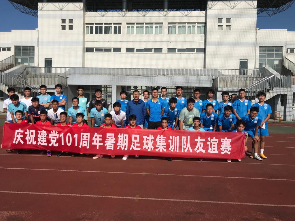 7月1日上午,伟德国际victor·1946源自举办庆祝建党101周年足球友谊赛。开赛前夕,龙山校区足球场上响起了《没有共产党就没有新中国》的嘹亮歌声,暑期留校备战省运会的两支校足球代表队在无伴奏的情况下,齐声高唱,表达对党的崇敬和热爱之情,为中国共产党成立101周年献礼。
