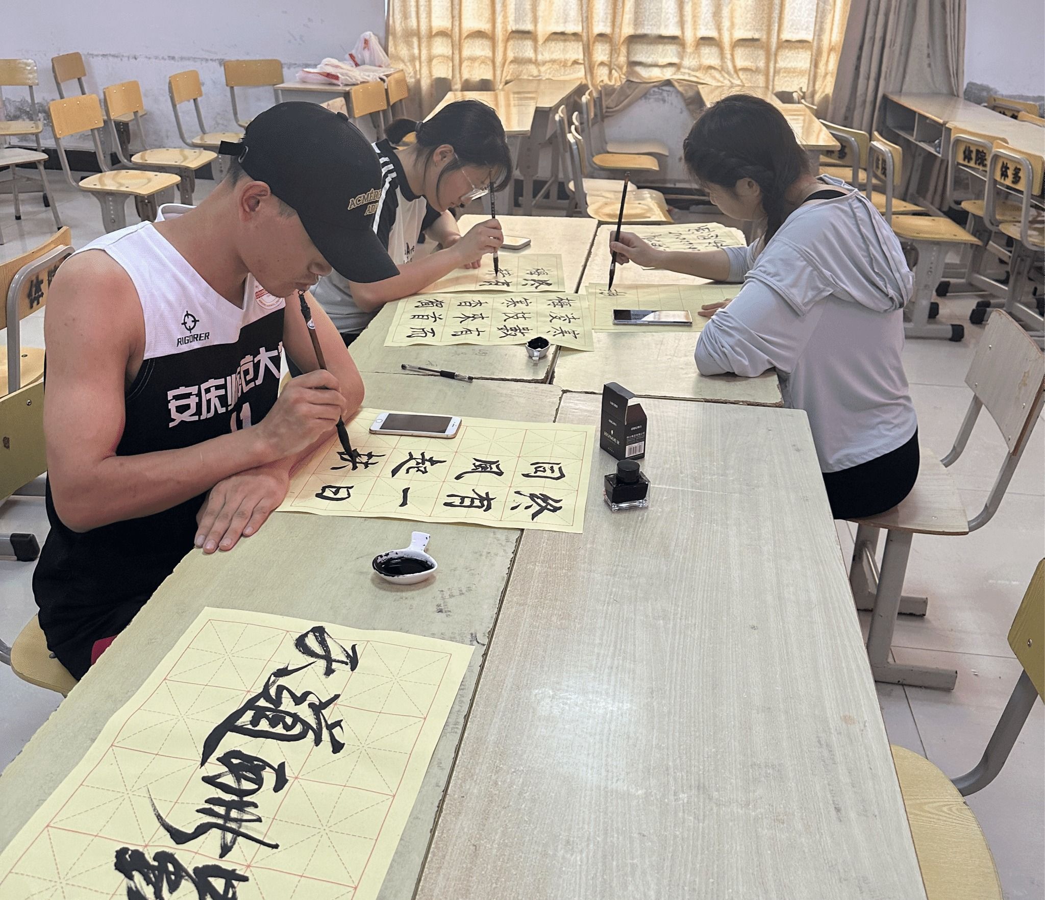 比赛现场,参赛选手依序参加钢笔字、毛笔字、粉笔字和普通话比赛,选手们凝心聚力,全力以赴,在规定时间内,完成了各自比赛任务。最终,杜文宇、孙文杰、奚文杰和金德馨等四名同学脱颖而出,获得比赛一等奖,将代表学院参加校赛角逐。