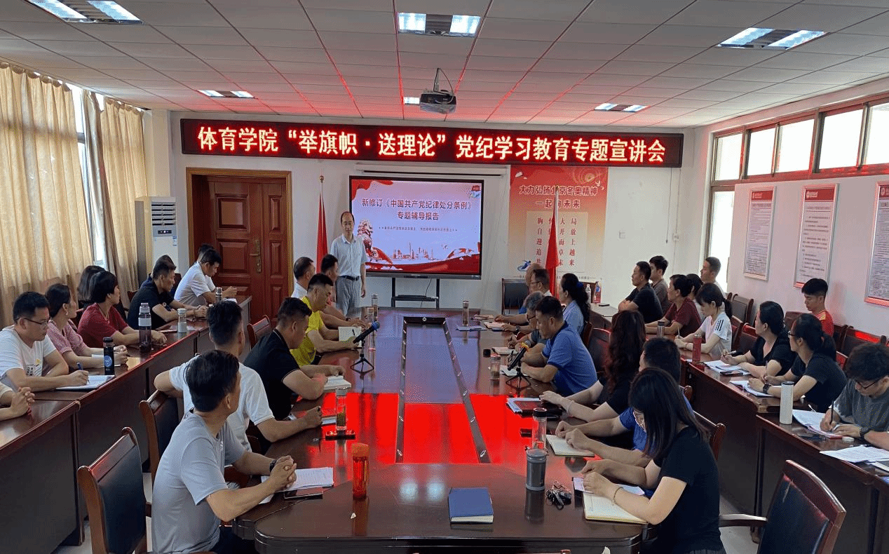 6月12日,学院在体育馆三楼会议室举办党纪学习教育专题宣讲会,会议由党委副书记、纪委书记王玮围绕新修订《中国共产党纪律处分条例》进行专题辅导报告,学院党委领导班子成员和全体教师党员参加学习。