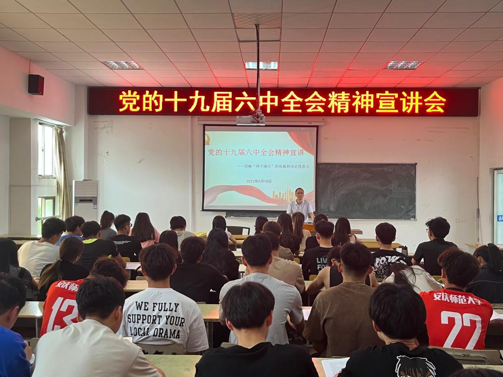 5月18日,学院党委副书记、纪委书记高栋梁在学院多媒体教室为学生党员和入党积极分子作党的十九届六中全会精神宣讲。