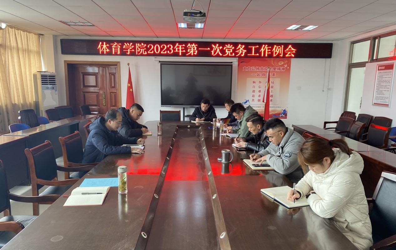 2月17日,我院在体育馆三楼会议室召开2023年第一次党务工作例会。受学院党委书记委派,党委副书记、纪委书记王玮主持会议,学院党委秘书、组织员及各党支部书记参加会议。