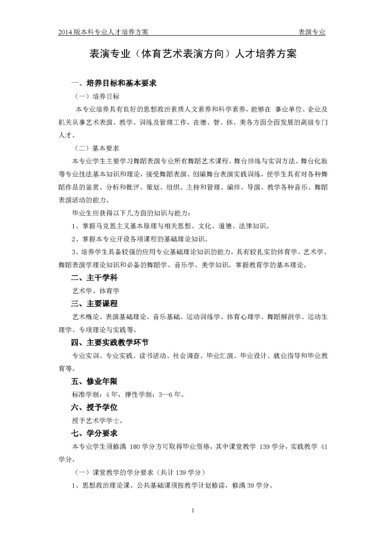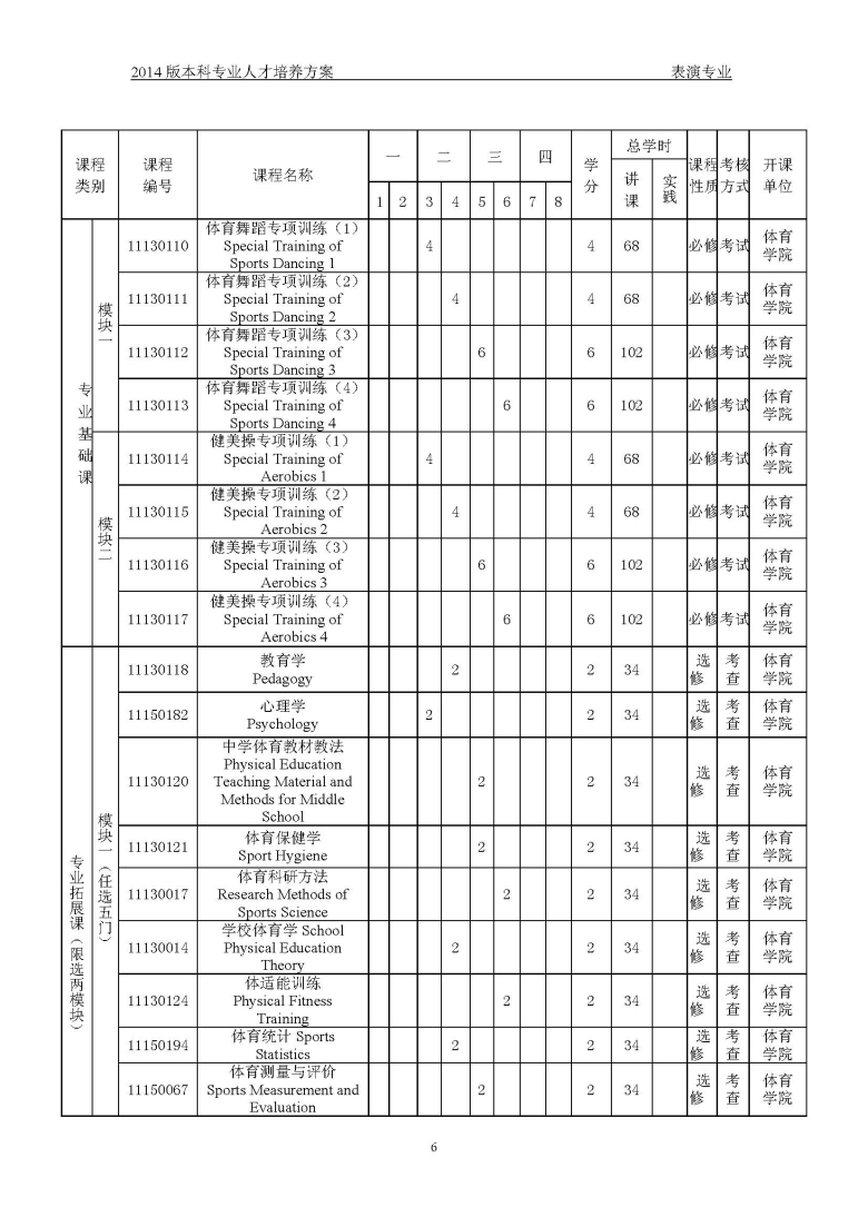 表演-体育表演方向培养方案