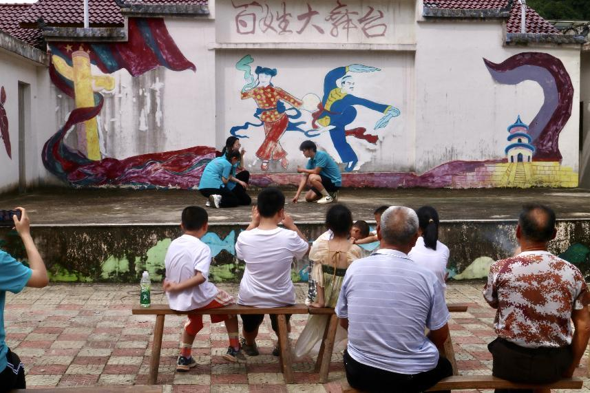 打磨剧本、演员选定、道具筹备……实践团成员提前一个月进行创作筹划。因为观众大多是孩子和老年人,信息与计算科学专业2023(2)班朱子捷几度易稿,一遍遍打磨故事情节,力求在保留话剧精华的同时使舞台呈现更为通俗易懂。“村中的表演环境较为艰苦,没有灯光,没有话筒。”表演(体育艺术表演方向)专业2022(3)班唐丽妍直言,即使客观条件不足,团队成员仍全身心投入排练,从走位和台词等细节入手,期望以强烈的戏剧冲突、情感表达呈现出毒品的苦与恶,无数缉毒警的血与泪。