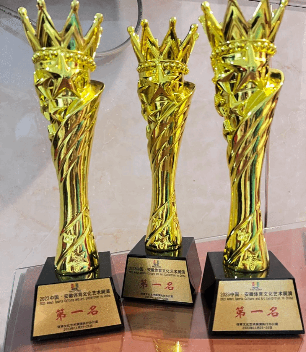 11月25-26日,2023中国·安徽体育文化艺术展演在合肥奥体中心体育馆隆重举行。来自湖北、江西、天津等全国各地市2000余名选手参加比赛。我校2021级体育表演2班、2022级体育表演2班和3班同学,在教练员李伟志、黄子友老师的带领下参加比赛。经过激烈角逐,获得三项第一名,四项第二名的优异成绩。