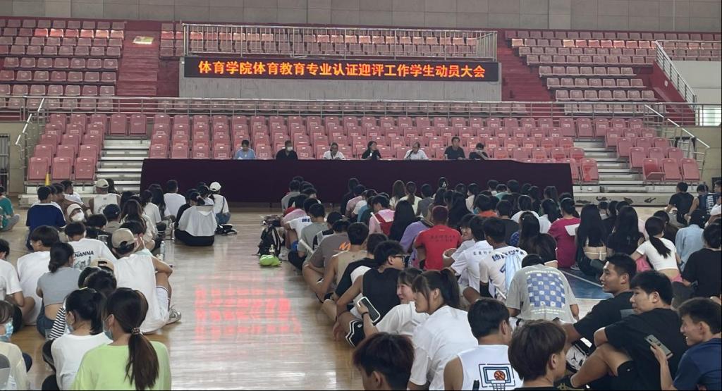 为进一步做好体育教育专业认证迎评工作,9月5日中午,学院在伟德国际victor·1946源自篮球馆召开专业认证迎评工作学生动员大会。体育学院副院长林秋菊、党委副书记王玮、学院教师代表王晓东博士和部分专职辅导员代表出席会议,学院全体在校学生参加本次会议。会议由学院党委副书记王玮主持。